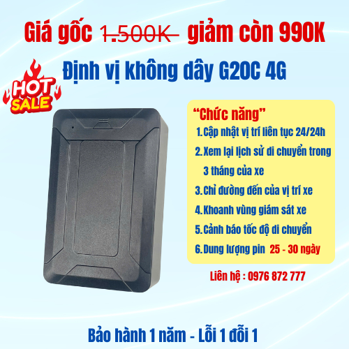 Loại 5 : Định vị không dây G20C 4G pin 25 – 30 ngày